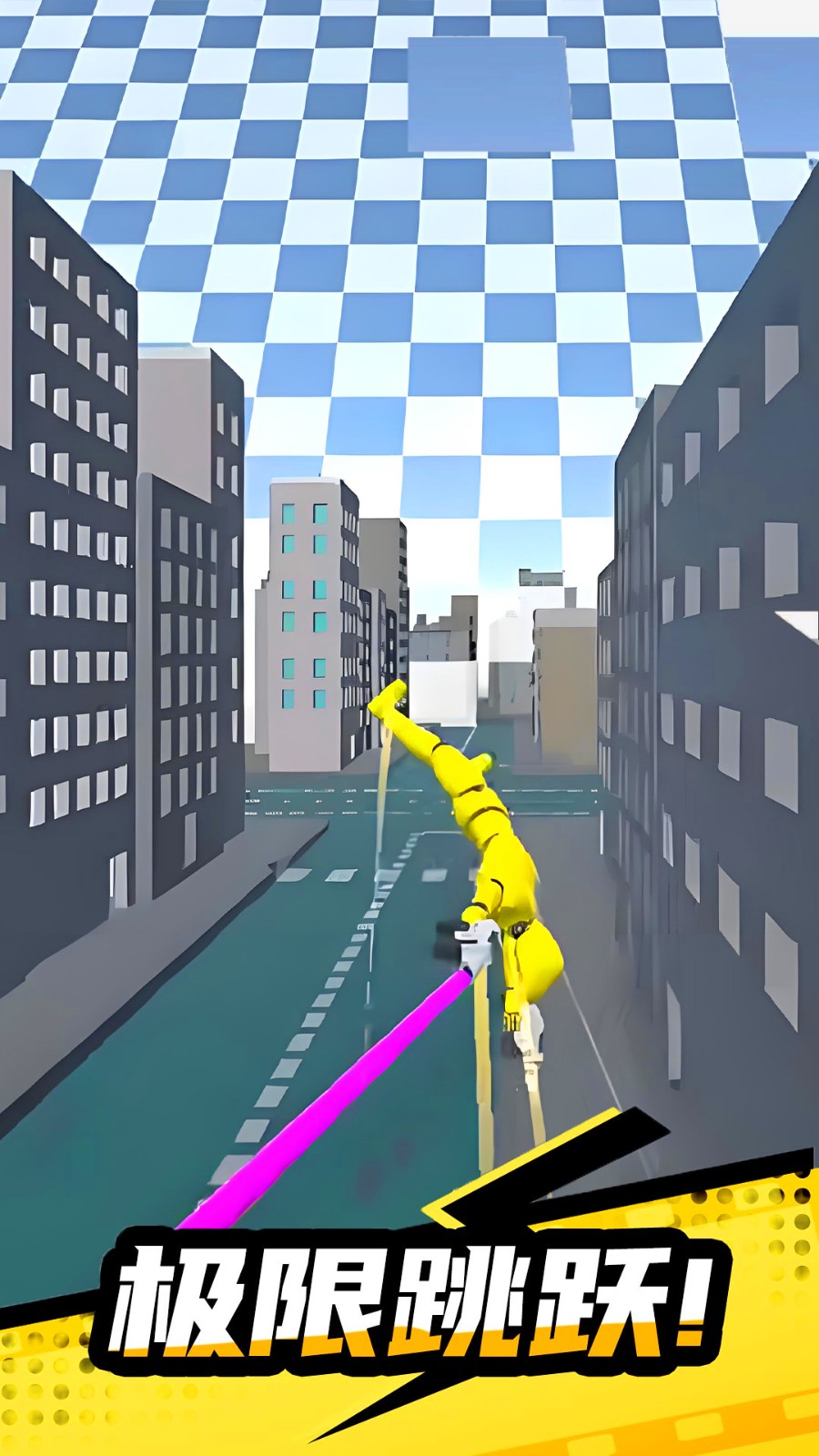 1.休闲闯关挑战:以物理弹射为核心机制的横版闯关游戏,玩家通过操控绳索引导角色飞行,突破城市建筑群的重重阻碍。