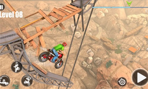 狂野摩托特技赛是一款热门的摩托竞速手游,每个赛道有着巧妙的设计,在高空之中驾驶前进,完美控制方向和速度,还会面临到许多的坡道,可以做出翻转的酷炫动作,会得到更多的分数,尽可能以最短的时间抵达终点解锁全新挑战!