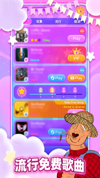 1.挑选歌曲,开启挑战。游戏内提供了风格多样的曲目,玩家可依据自身的节奏基础,选择适宜的难度来进行闯关。