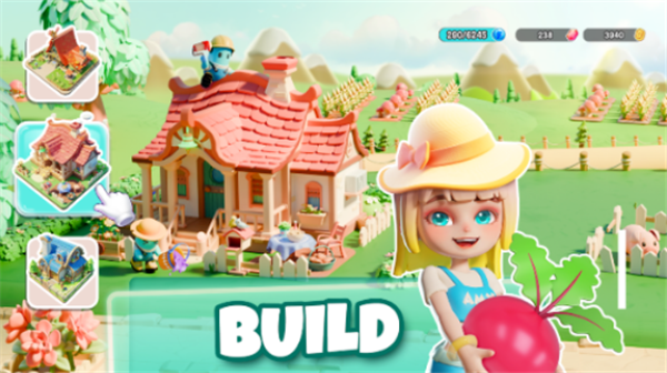 3、你可以随意拖动和调整建筑位置,并利用丰富的装饰道具,从田园栅栏到卡通雕塑,打造出独一无二的个性农场。
