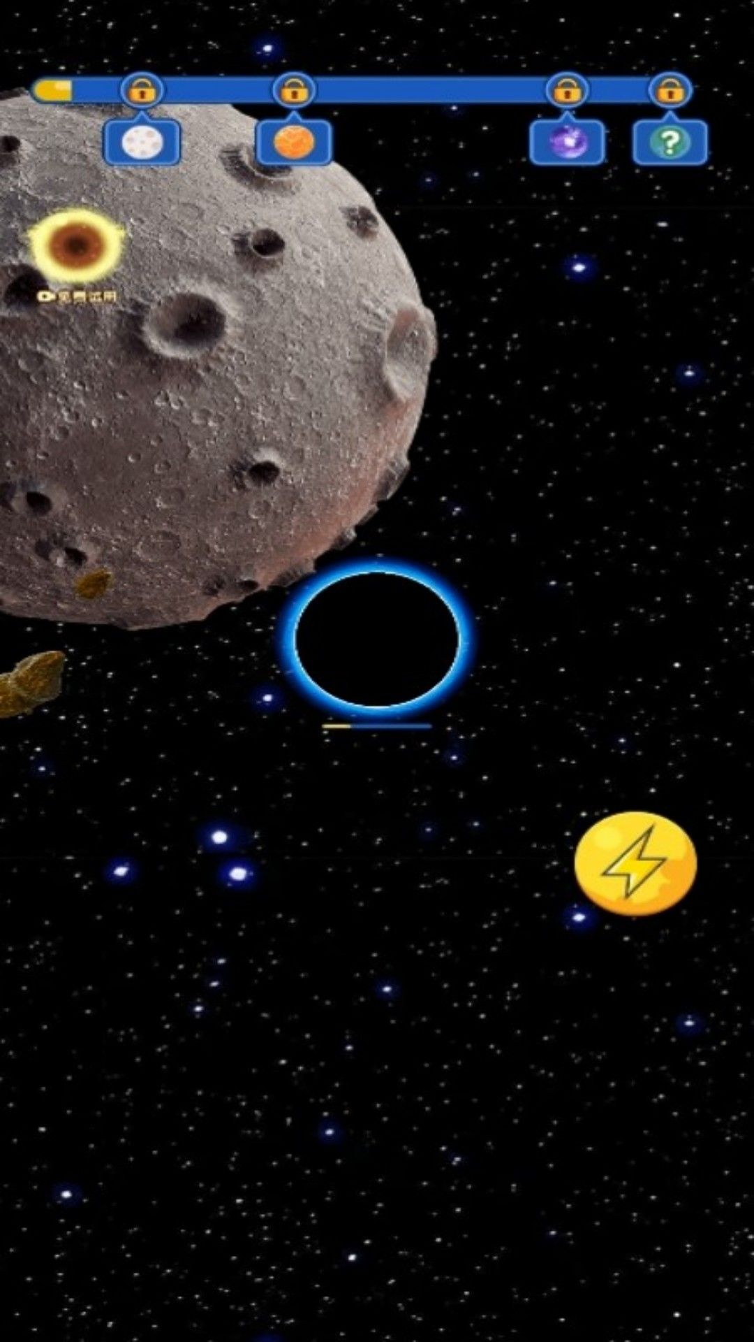 2、从星际尘埃到巨型恒星皆可吞噬,随着质量增加会解锁新的引力技能。