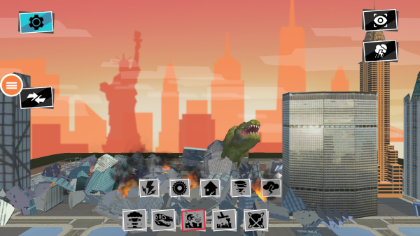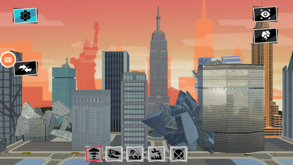 1、选择心仪的破坏元素,如自然灾害或武器等,对游戏中的都市建筑物发起破坏,观察破坏过程与结果。