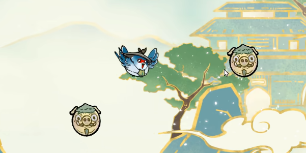 1. 通过拖拽调整弹弓的发射角度和力度,松开手指即可将小叽射向目标位置攻击小猪。