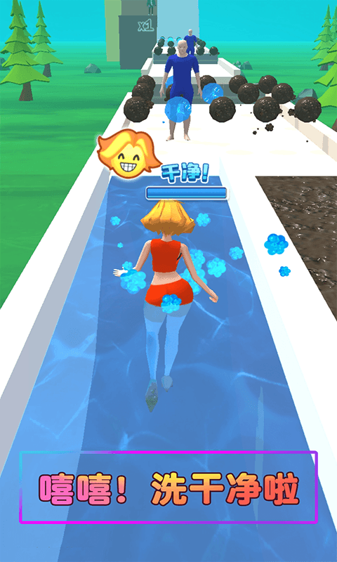 游戏的玩法简单易上手,但充满策略性。赛道中布满了泥泞和脏物,玩家需要通过灵活的操控避开这些障碍。如果不慎沾上泥巴,可以利用沿途的清水池进行冲洗,减少身上的污渍。值得注意的是,终点会根据玩家的清洁程度评分,泥巴越少,得分越高。此外,某些特殊关卡还会加入道具系统,比如加速鞋、护盾等,帮助玩家更轻松地完成挑战。多人模式下,玩家还可以使用干扰道具阻碍对手,让比赛更加刺激!