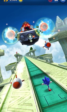 1、游戏创新性地将音游元素融入跑酷玩法,特定关卡会随背景音乐节奏生成障碍物,踩准节拍可获得分数倍增。每日更新的SEGA挑战任务会奖励限定道具和角色碎片。