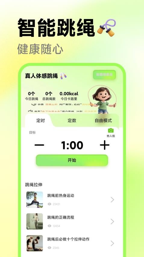 真人体感跳绳官网版app将传统跳绳运动与现代科技完美结合,为用户带来全新的智能健身体验。精准的动作识别技术确保运动数据真实可靠,丰富的训练模式满足不同用户需求。专业的健康指导和科学的数据分析,帮助用户实现安全有效的体能提升。无论是健身新手还是运动达人,都能通过这款应用获得专业级的跳绳训练体验,享受科技带来的运动乐趣。