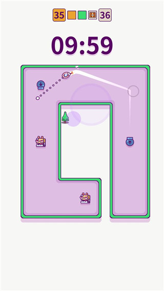 游戏玩法:玩家通过划屏幕来控制炸弹的发射方向,使其在场景中弹射移动,目标是在 15 秒内消灭所有兔子或炸开宝箱,同时要躲开坏兔子。玩家还可以按住屏幕进入子弹时间,减慢游戏节奏,以便观察战局并改变炸弹的前进路线。