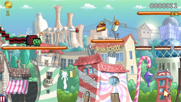 3.在线游戏排行榜,收集太空糖果和太空道具,随机发送10幅Nyan Cat漫画,解锁新的Nyan Cat皮肤,并设置主题关卡。