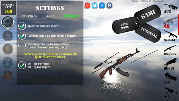 选择枪械:游戏主界面采用军械库式的展示方式,玩家可以在界面右侧滑动浏览 36 种不同类型的枪械,包括手枪、步枪、狙击枪、霰弹枪等,点击任意一款枪械,即可进入该枪械的拆解和安装展示页面。