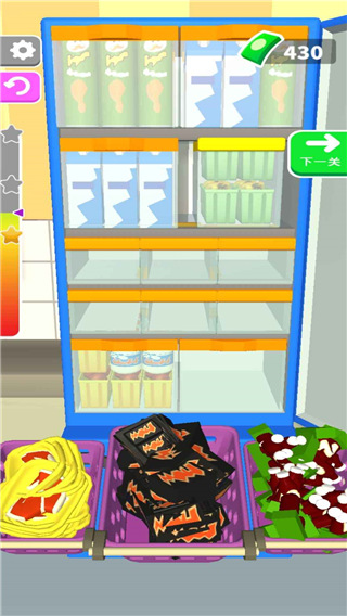 丰富多样的物品:游戏中包含各种日常生活中常见的食物、饮料、调料等物品,每种物品都有独特的形状和大小,增加了整理的难度和趣味性。
