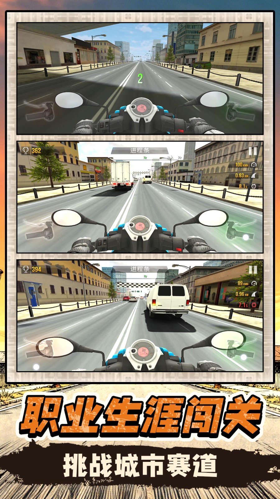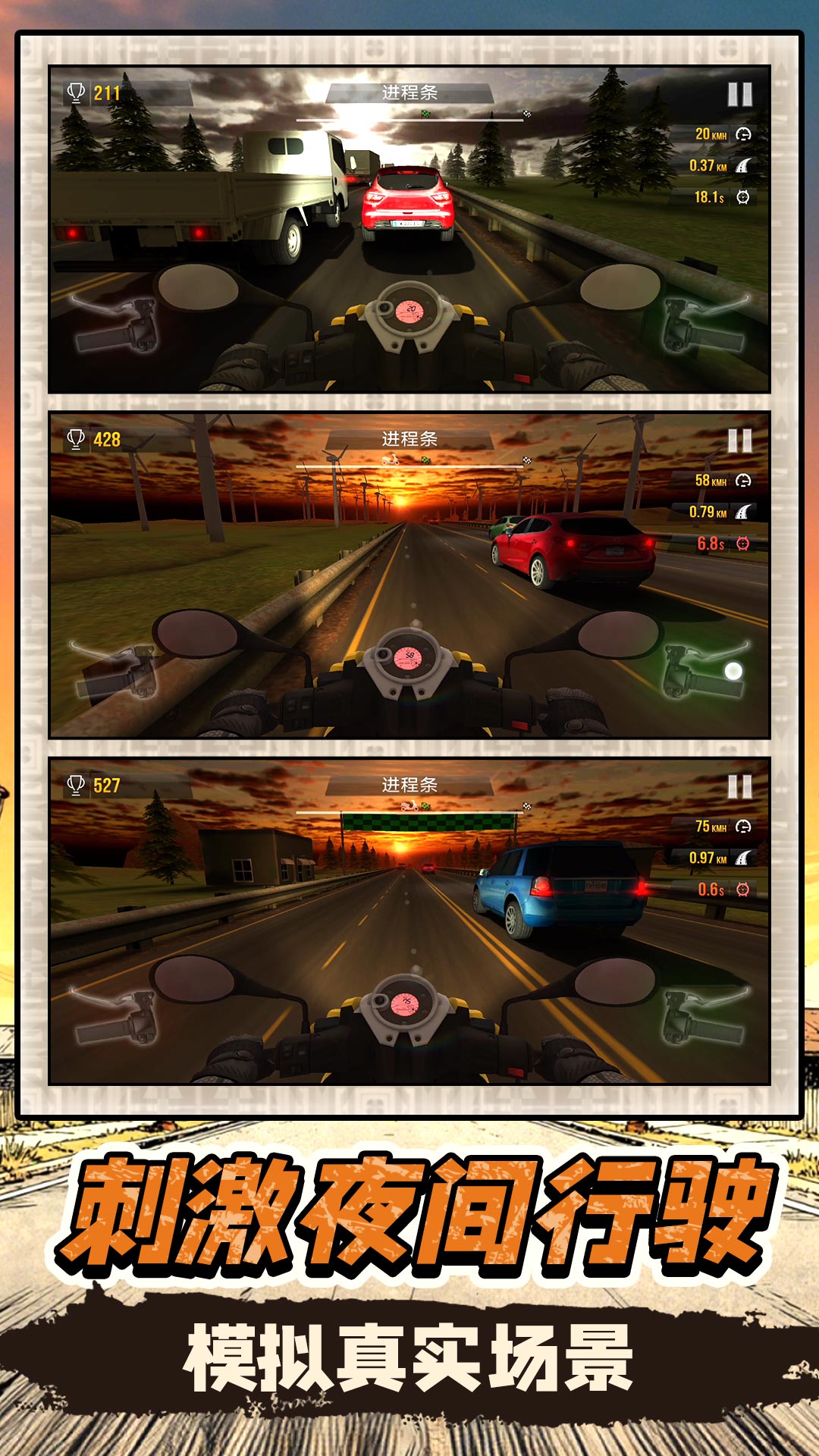 3、采用写实物理引擎,摩托行驶时会呈现真实的动态效果,不同路况会影响摩托操控手感,,还原真实驾驶体验。