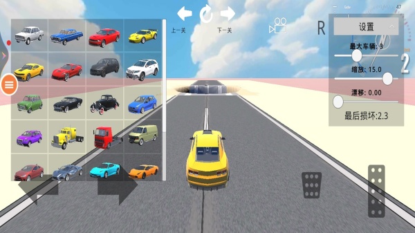 2、专属碰撞测试模式为核心玩法之一,玩家可选择固定碰撞场景,设定碰撞速度与角度,进行针对性测试。