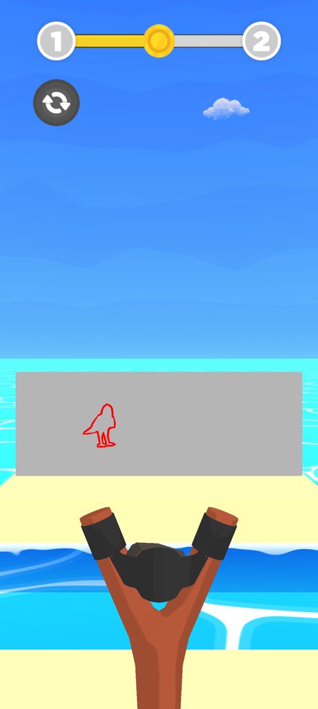 3、注意哦,大家能滑动屏幕,调整弹弓的发射角度,整体的游戏玩法操作还是相当直观的。通过长按屏幕可以蓄力,松开手指即可发射,力度和角度的完美配合是获得高分的关键。