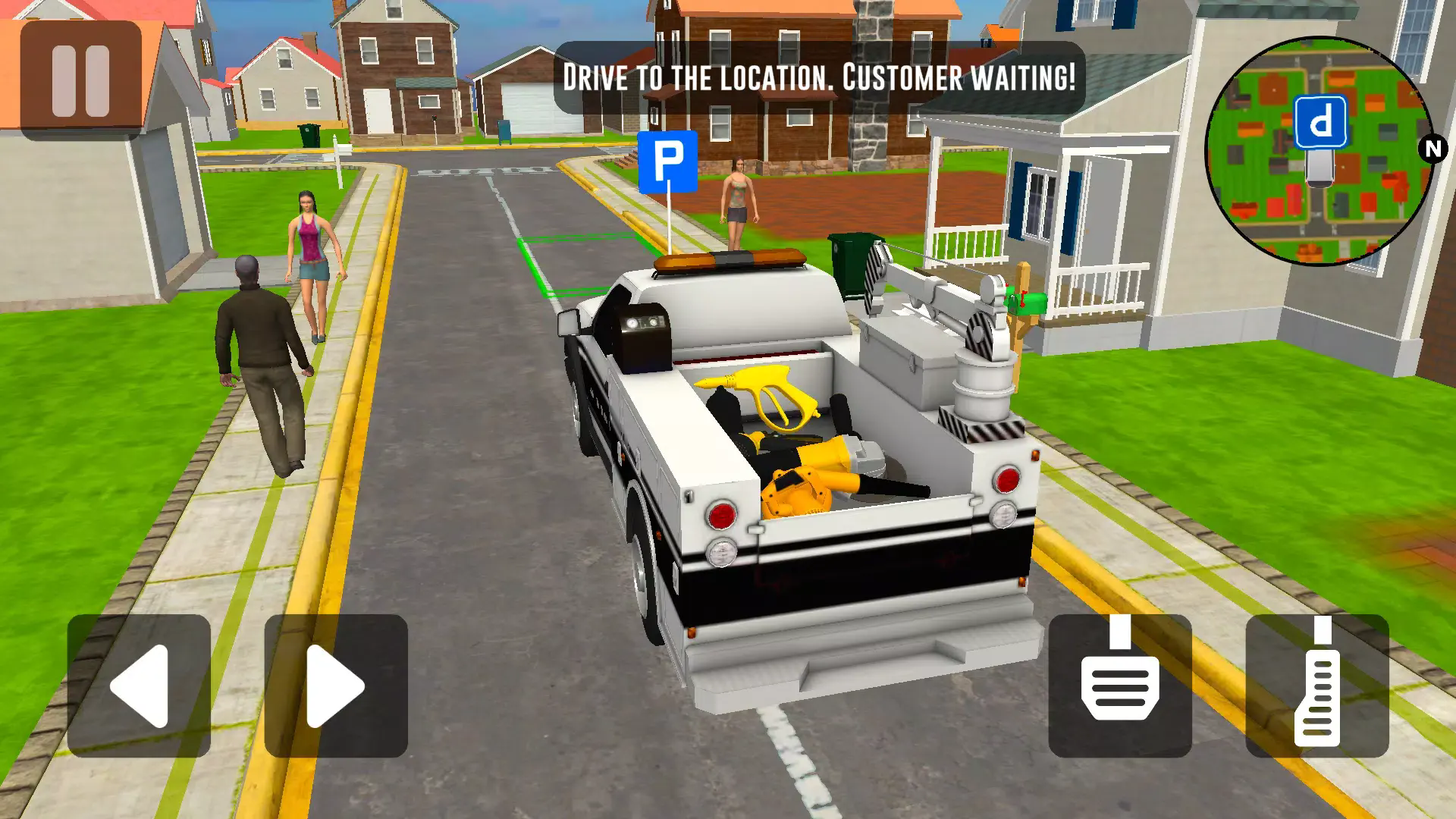 4.到达客户家中后,玩家可以开始清洗汽车。游戏提供了多种清洁工具,每种工具都有其特定的用途。