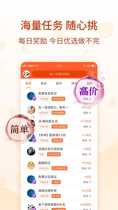 平台每日更新海量真实任务,包括试玩应用、小程序推广、新闻阅读、运动计步、优惠券分享等多种类型。项目需求方可以免费发布真实有效的任务信息,确保供需双方都能获得满意的体验。任务种类丰富多样,满足不同用户的兴趣和需求,让赚钱变得更加轻松有趣。