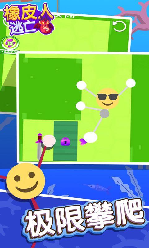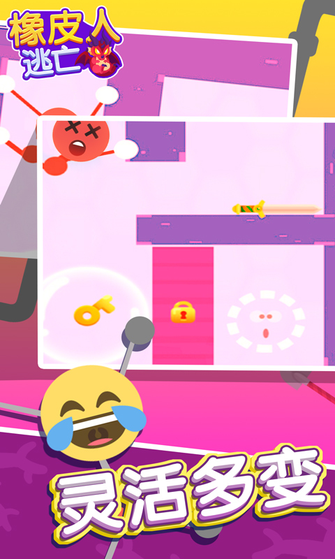 3、观察与试错在这里是非常重要的,尝试各种不同方法,享受这个思考的过程,帮助橡皮人逃离。游戏鼓励玩家大胆尝试各种解决方案,即使失败也能获得欢乐。每个关卡都提供无限次尝试机会,让玩家可以不断优化自己的通关路线。游戏还设有隐藏成就系统,等待细心的玩家去发掘。