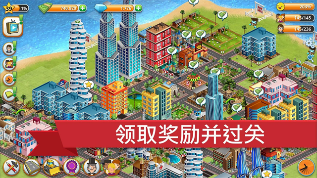 2、升级建筑解锁新内容,让城市经济持续增长。