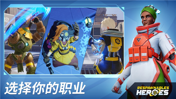 英雄选择:游戏目前有 8 位英雄可供选择,定位分为重装、突击和支援三种,每位英雄都有自己的标志性武器和技能,除了射击,还有两个普通技能和一个终极技能。