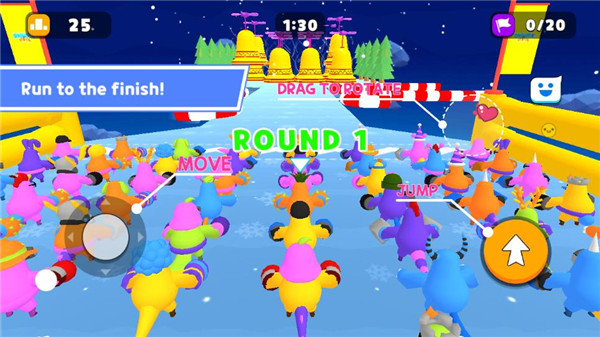 皇家派对是一款由GenI Games开发的Q萌画风冒险竞技手游。关卡随机生成,每次挑战都充满刺激和新鲜感,能让玩家体验竞技乱斗的乐趣。游戏还融入了经典的吃鸡模式,内容丰富有趣,人物形象生动可爱。玩家可以左右灵活移动游戏角色,挑战各种关卡,与其他伙伴匹配对决,最快到达终点者获得胜利。