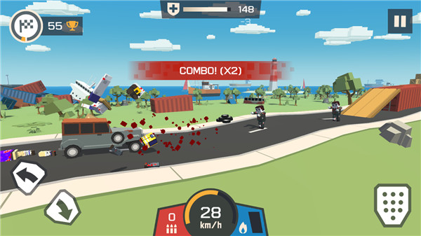 独特的画面与音效:采用像素风格画面,给玩家带来复古又精致的视觉体验,同时搭配 8-bit 电子音效,车辆碰撞时会弹出像素化内脏特效,魔性又带感。