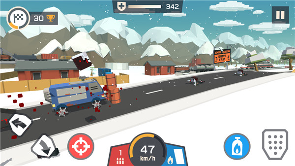 粉碎僵尸与击穿障碍:游戏中有数十种不同类型的僵尸和障碍,玩家要驾驶车辆粉碎僵尸,还要当心僵尸狗等特殊敌人,同时销毁其他汽车和公共汽车以求生存。