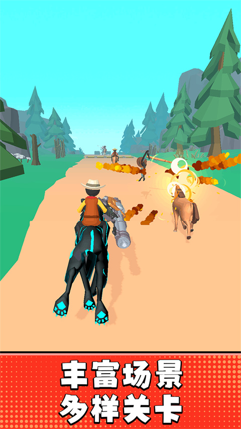 关卡挑战:采用章节式关卡设计,每个章节都有完整的牛仔冒险故事,超过 50 个特色关卡等玩家征服。玩家需掌握不同地形的套牛技巧,如在月球关卡要考虑低重力环境的影响。