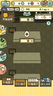 2、设备强化系统让生产效率持续提升。投资升级现有机器可以缩短生产周期、降低能耗成本,使您的养鸡场在竞争中保持领先优势。不同设备的升级路线各具特色,需要玩家根据发展战略做出合理选择。