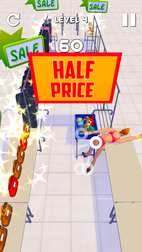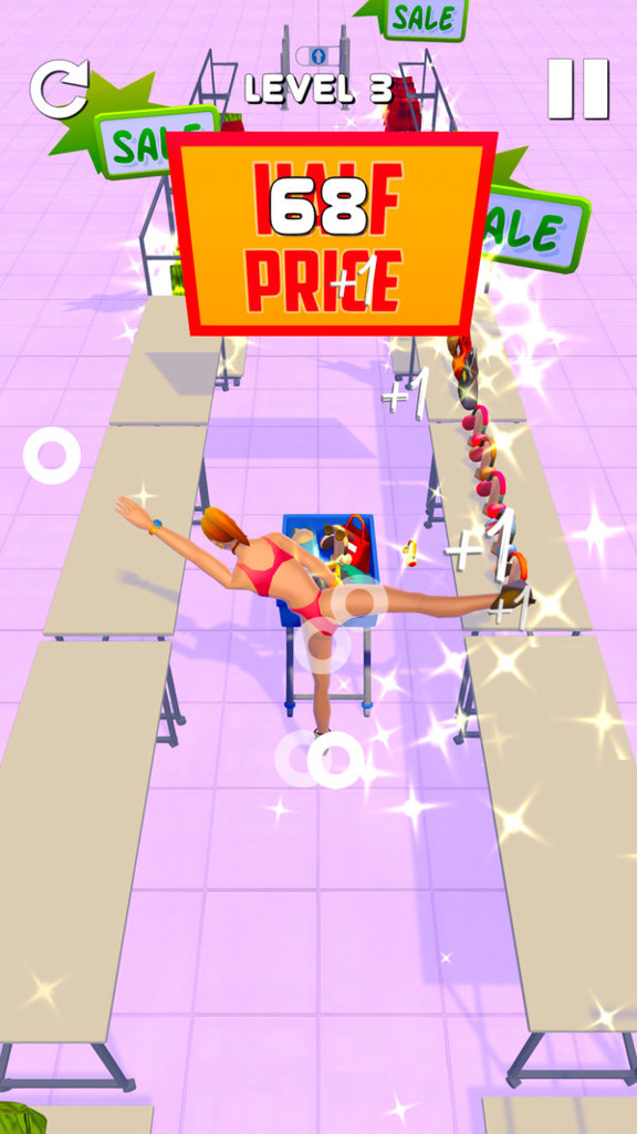 在游戏中,你需要像真正的购物达人一样眼疾手快。通过左右滑动屏幕控制角色移动,上滑跳跃躲避地面障碍,下滑可以穿过低矮的货架。特别要注意商场里的特殊区域:生鲜区的地面会随机出现水渍导致打滑,服装区的衣架会突然倒下阻挡去路。游戏还设置了限时抢购环节,在倒计时结束前收集指定商品能获得额外积分。记住,不仅要跑得快,更要捡得准,漏掉心仪商品可是会扣分的哦!