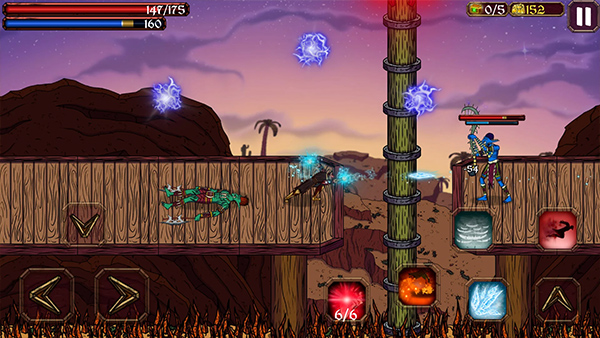 操作方式:进入游戏后,玩家可通过点击左下角的虚拟摇杆控制巫师移动,点击冲刺按钮可刺穿敌人造成伤害,点击火球键能释放火球法术。