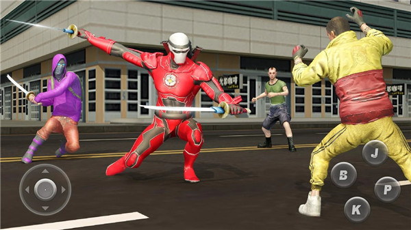 角色操控与战斗:玩家将化身强大的忍者英雄,通过简单的点击操作即可施展忍者刀法和踢技,与街头罪犯等各种敌人展开激烈对决。游戏提供了多种操作模式,玩家可以根据自己的习惯选择触屏操作、虚拟摇杆或重力感应等方式来操控角色。