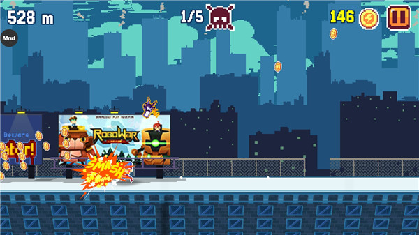 超级像素英雄是一款像素风动作冒险手游。玩家将操控各种造型独特的像素英雄展开热血战斗。游戏有 “争吵” 和 “战斗” 两种模式,“争吵” 模式是无尽闯关模式,玩家要挑战越来越强大的对手;“战斗” 模式要求收集一定数量的英雄方能解锁,玩家可以在地图上自由行动、探索,与众多敌人战斗。战斗中,玩家点击敌人身体可快速连续击打,向左滑动是快速撤退,向右滑动是冲锋。当击打敌人至手脚全落之后,点击屏幕右下角的骷髅按钮,就可以用帅气的动作终结敌人的生命。
