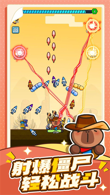 守卫末日是一款融合塔防、射击与策略元素的放置类生存游戏,游戏设定在末日背景下,玩家将化身为西部牛仔,操控卡皮巴拉迎战来袭的僵尸军团,采用魔性 Q 版的卡通画风,构建出荒诞有趣的废土世界。