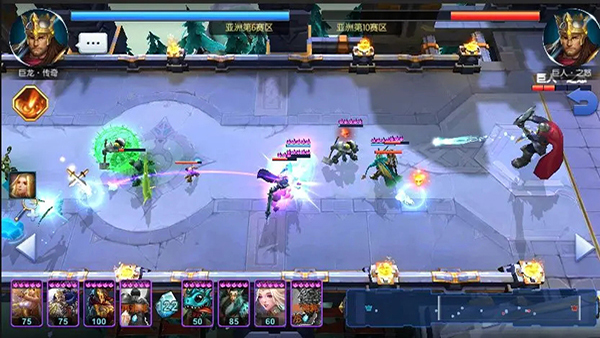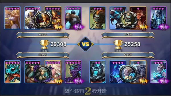 种族与英雄搭配:游戏中有 14 个特色种族、上百位英雄,各族英雄相互克制。例如,光明族的圣女能克制飞行单位,地狱族魔女擅长眩晕地面近战。玩家需要指挥这些英雄展开史诗级团战。