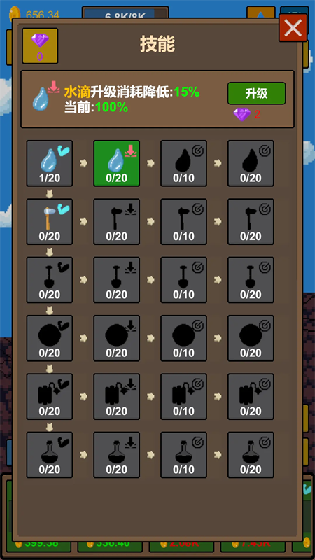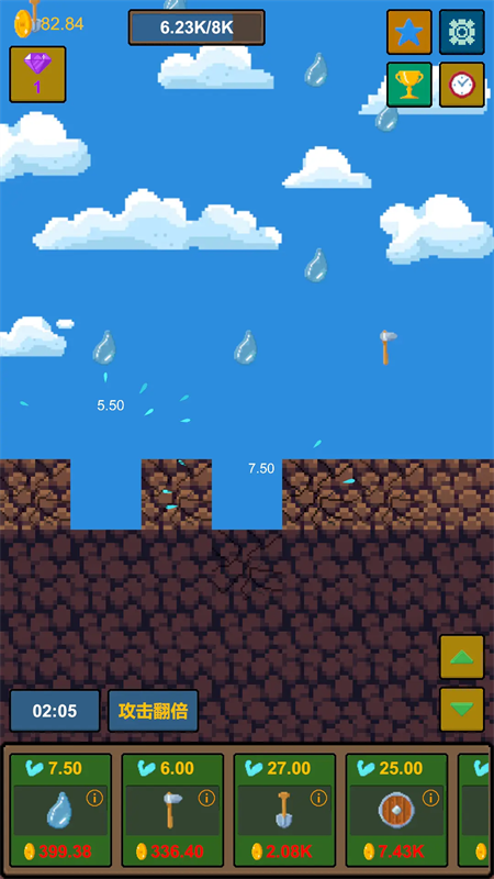 升级水滴属性:玩家可以使用积累的金币进入升级界面,提升水滴的冲击力、掉落频率等属性,从而提高每次点击的收益,更快地积累金币。