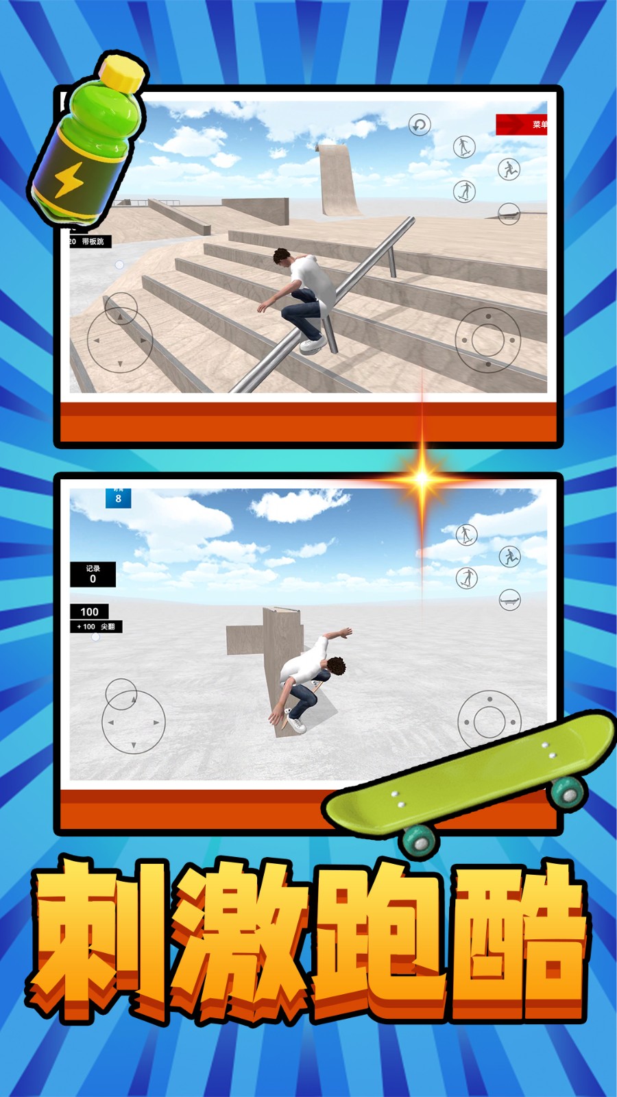 4、游戏设计了全新的挑战,让玩家在简单的指尖操作中体验滑板的乐趣,操作简便,令人爱不释手。