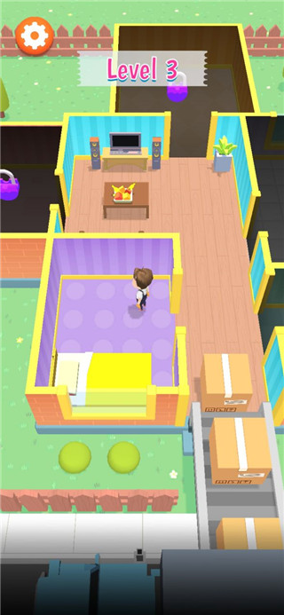 布置房间:玩家进入游戏后,可通过左右控制角色移动,前往门口开启箱子获取家具与装饰物品,然后将其合理摆放在房间内,完成布置任务即可解锁更多房间区域,如卧室、客厅、厨房、健身房、浴室等。