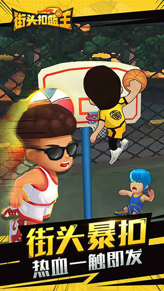 街头扣篮王是一款卡通风格的热血篮球竞技手游,玩家需要通过收集不同属性的球员卡牌,打造属于自己的强力篮球战队,挑战各种强力对手,以赛场胜利为己任。