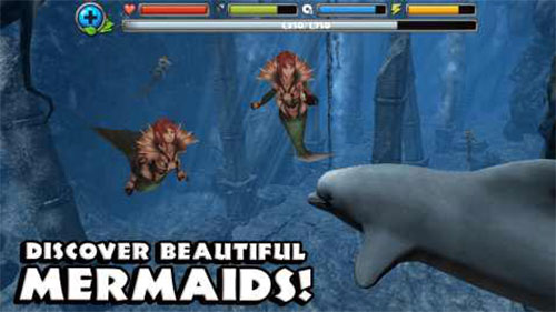 1、遨游海洋,操控自己的海豚在海底自由的遨游,探索未知的海洋区域,解锁更多的场景。