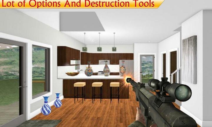 1、使用多样化的枪械武器对室内物品进行自由破坏,享受无拘无束的宣泄快感;