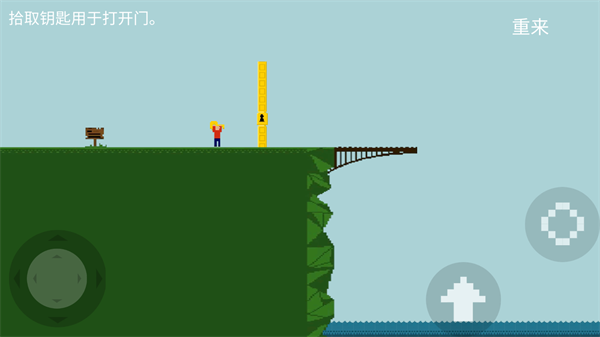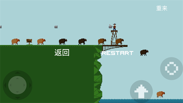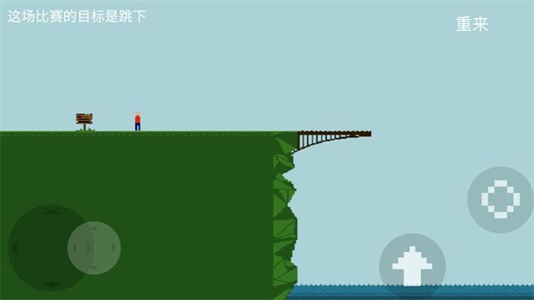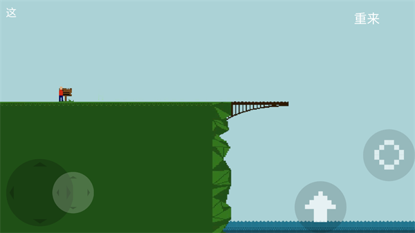 核心操作:玩家主要通过左侧摇杆控制角色移动,把握跳跃时机,突破各种障碍,最终成功跳入河中即可通关。