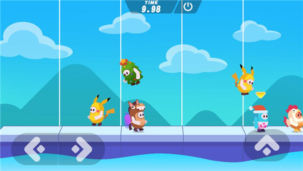 模式多样:有激情大冲关、圣诞狂欢夜、在一起猜水果、抢皮球等模式。在激情大冲关中,玩家需越过障碍冲向终点;圣诞狂欢夜模式中,玩家要收集空中掉落的圣诞礼物;在一起猜水果模式下,玩家需牢记水果位置并站在对应水果下;抢皮球模式里,玩家需迅速接触散落的皮球以争取更高排名。