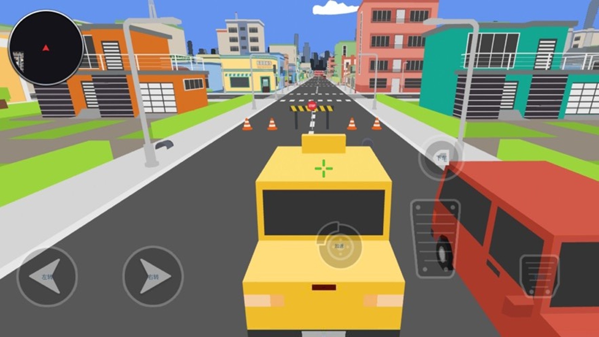3、驾驶黄色车辆时,通过左右方向键控制行驶方向,避开道路上的路障和其他车辆,沿着道路中央行驶以保持稳定。