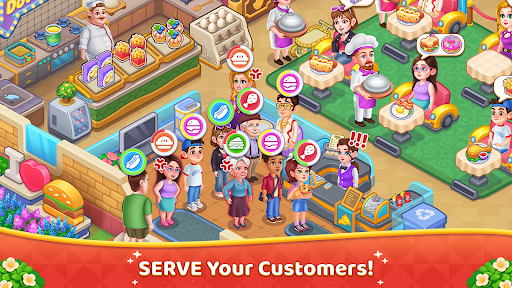 3、卡通视觉风格:采用色彩鲜艳的卡通美术设计,餐厅场景、菜品模型与顾客形象都呈现出圆润可爱的视觉效果,营造轻松活泼的经营氛围。