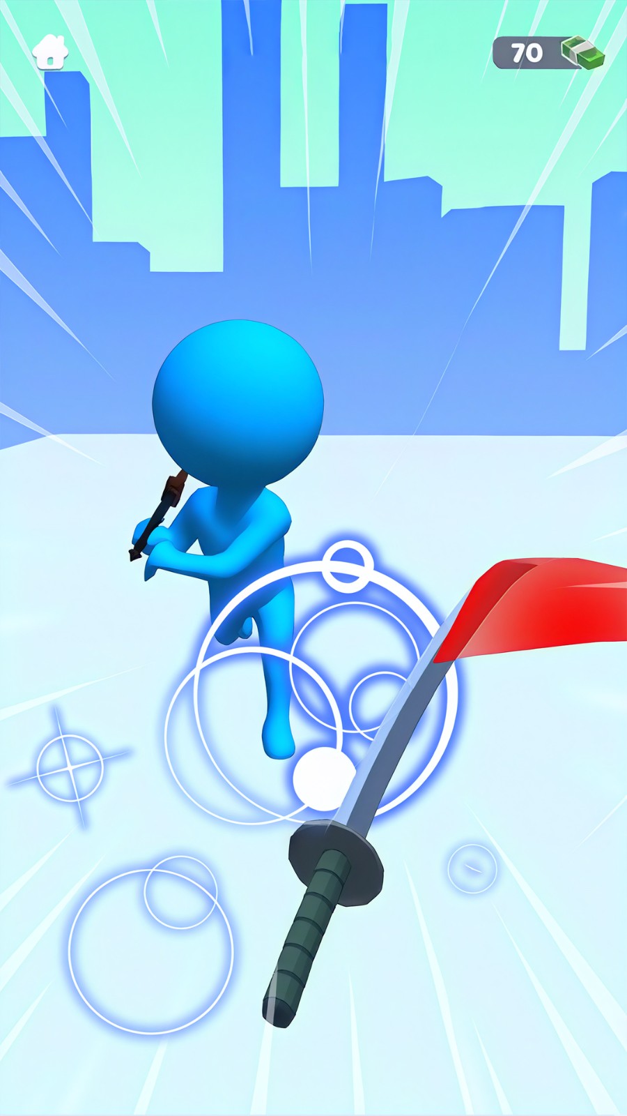 1.丰富刀具解锁系统:提供超过数十种风格迥异的刀具,涵盖冷兵器时代的刀剑至科幻题材武器,每把武器拥有独立外观与特效。