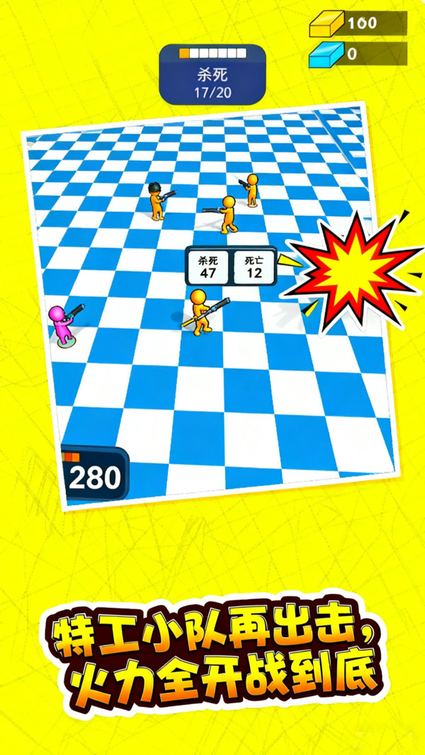 3、关卡设计围绕击杀目标推进,从少量敌人到大规模对战,难度逐步升级,战斗节奏紧凑且富有层次。