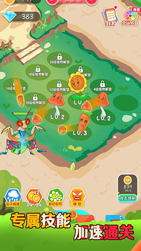 4.专属技能系统:每株植物配备特色加速技能,合理施放可瞬间扭转战局。