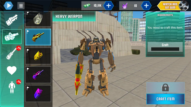 装备升级:玩家可以利用任务奖励在升级界面对机器人的攻击、防御、速度等属性进行提升,还可以购买或升级各种装备和武器,如等离子鱼雷、链锯巨颚等,不同的装备能改变战斗风格。