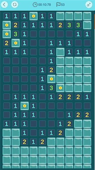 核心规则:游戏主区域由方格组成,玩家需要通过数字提示推理出地雷位置,将所有非地雷的格子揭开即获胜,踩到地雷则游戏结束。玩家可以点击右键标记雷,也可在已打开格子周围雷都正确标出时,同时点击屏幕打开其周围剩余无雷格。