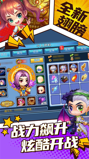 宠物养成系统:游戏中有蓝啵咕、魔蛇、远古大龙等 20 只神兽宠物,玩家可以养成宠物,让它们在战斗中助力。