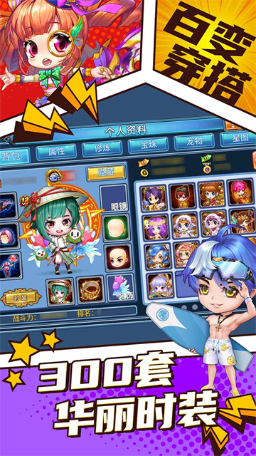 300套时尚个性化时装随你搭配,变身时尚达人;捕获可爱萌宠,为你征战四方!